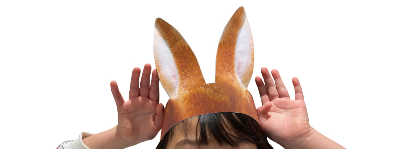 うさぎのしっぽでは再生紙を利用した「うさ耳バンダナ」をプレゼントいたします。