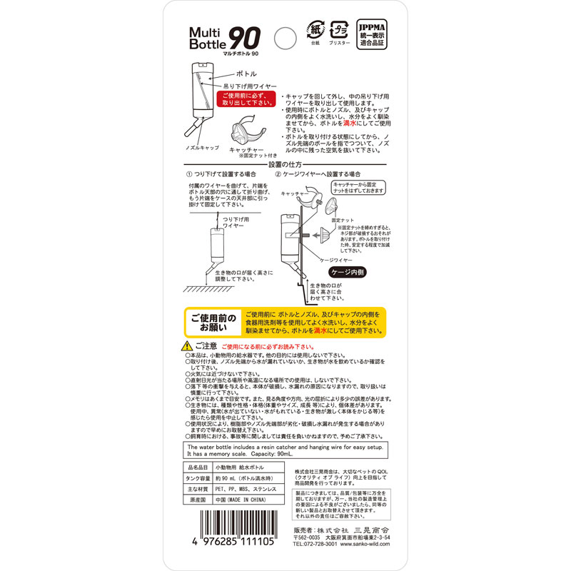 樹脂キャッチャーとつり下げワイヤー付きで、ケージワイヤーへの取り付けから、吊り下げ設置まで、マルチに対応します。