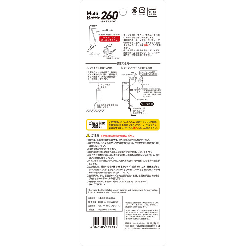 樹脂キャッチャーとつり下げワイヤー付きで、ケージワイヤーへの取り付けから、吊り下げ設置まで、マルチに対応します。