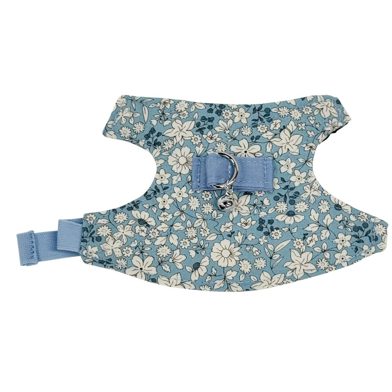 しっぽオリジナルのハーネス。体に負担をかけない様に背中の部分にクロス型の芯を縫い付けてあります。体を強く締め付けない少し伸縮するベルトで、居場所が分かるように鈴がついています。
