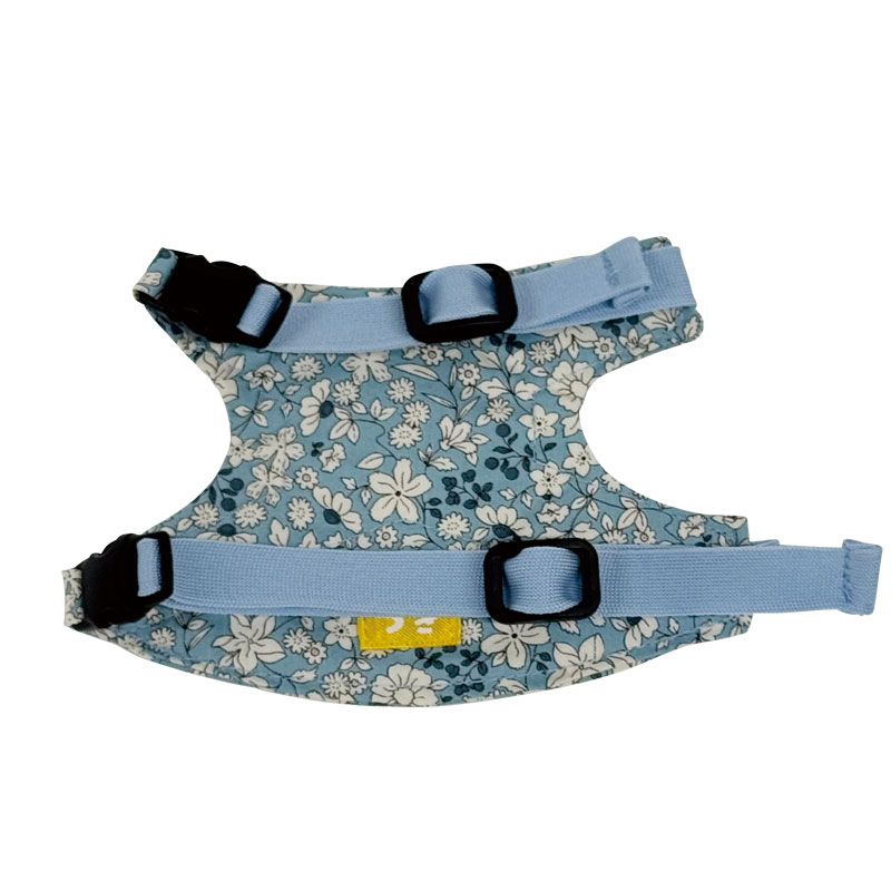 おしゃれで機能的なハーネスで、体に負担をかけない様に背中の部分にクロス型の芯を縫い付けてあります。