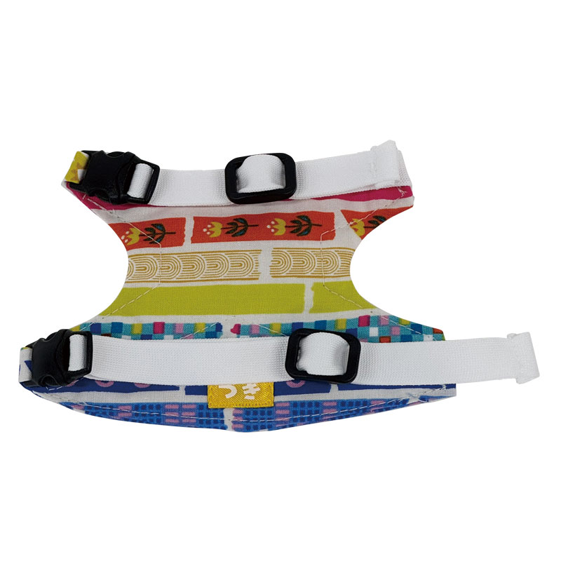 おしゃれで機能的なハーネスで、体に負担をかけない様に背中の部分にクロス型の芯を縫い付けてあります。
