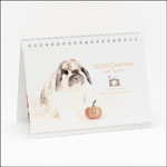 愛らしいうさぎモチーフのスタンド付き卓上カレンダー。毎月うさちゃんの毛色や表情が変化します。